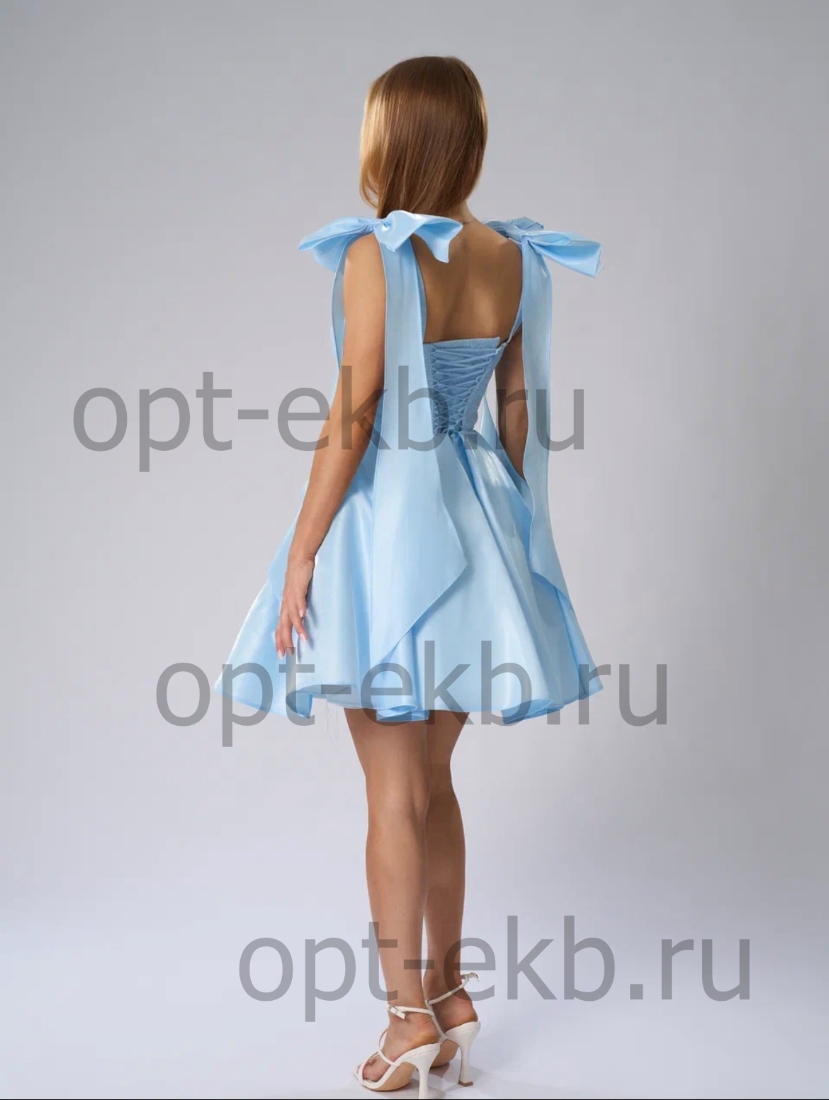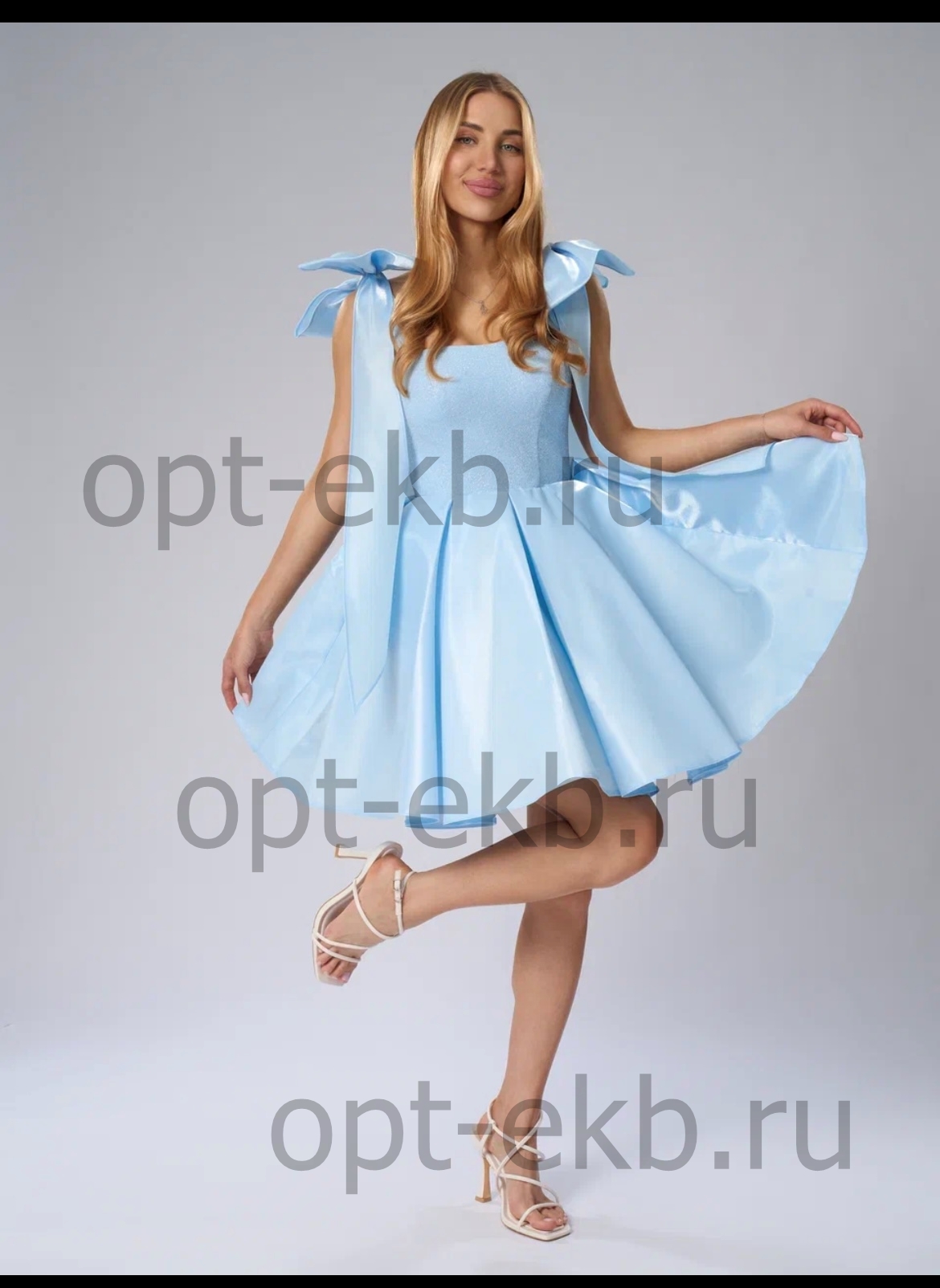 ‼️ голубой 46‼️ Юбка и банты ткань жидкое стекло (зеркало) Лиф глитер